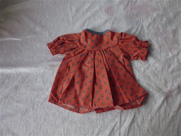 Mörk orange klänning med blommor som knäpps med kardborre bak. Passar Lillan. Artnr: Kl-93. Pris: 120 kr. Fri frakt inom Sverige