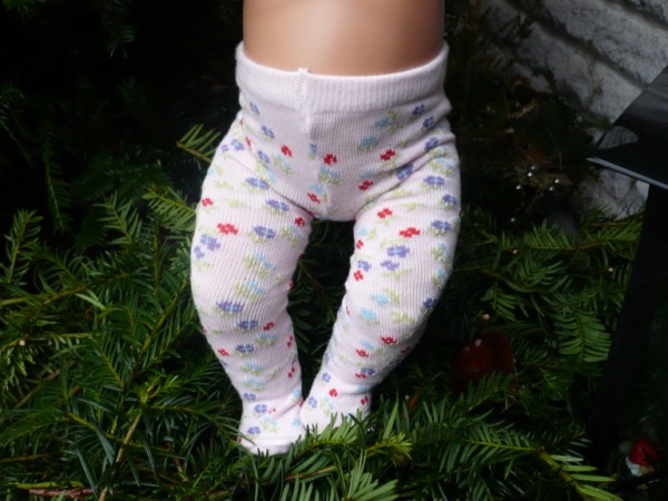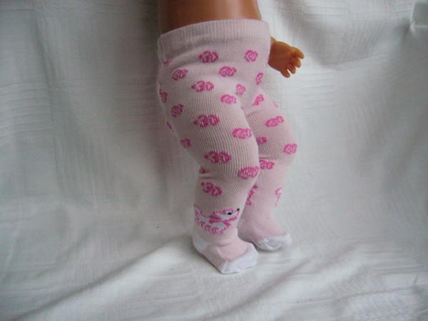 Ljusrosa strumpbyxor med blommor. De passar Skrållan, Baby Born, New Born Baby (43 cm). Pris: 78 kr.
