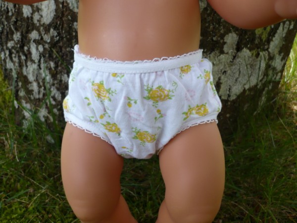 Vita trosor med gula rosor. De passar Skrållan, Baby Born & New Born Baby (43 cm). Pris: 53 kr.