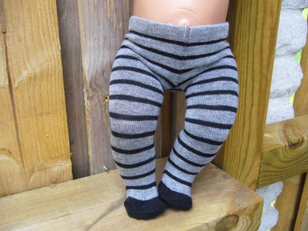 Grå/svart randiga strumpbyxor. De passar Baby Born, New Born Baby (Simbas 43cm). Pris: 78 kr.