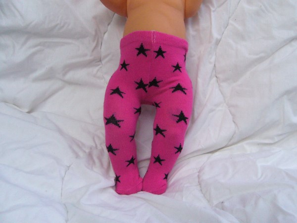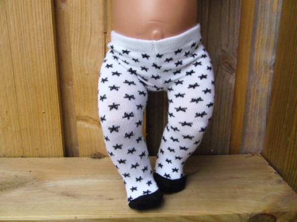 Vita strumpbyxor med svarta stjärnor. De passar Baby Born, New Born Baby (Simbas 43cm). Pris: 78 kr.