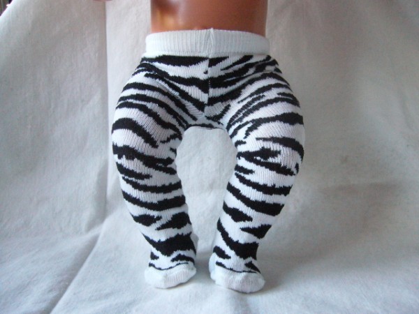 Vit & svarta zebrarandiga strumpbyxor. De passar Baby Born & New Born Baby (Simbas 43cm). Pris: 78 kr.
