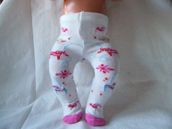 Rosa strumpbyxor med feer. De passar Skrållan, Baby Born & New Born Baby (Simbas 43cm). Pris: 78 kr.