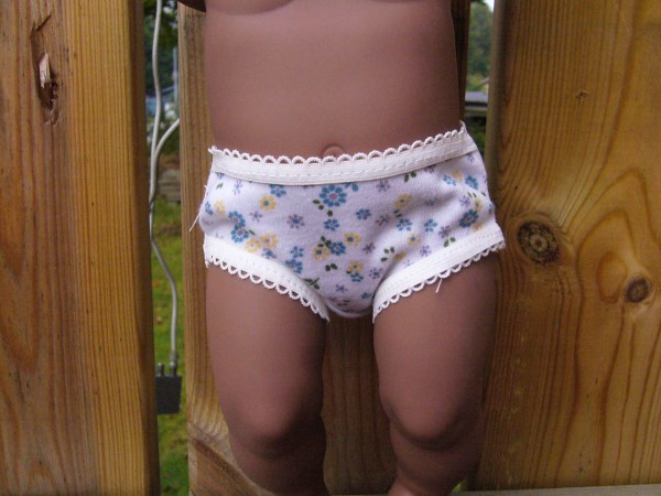 Vita trosor med blommor. De passar den lite mindre dockan bla Lillan & baddockorna Anna & David. Pris: 53 kr.