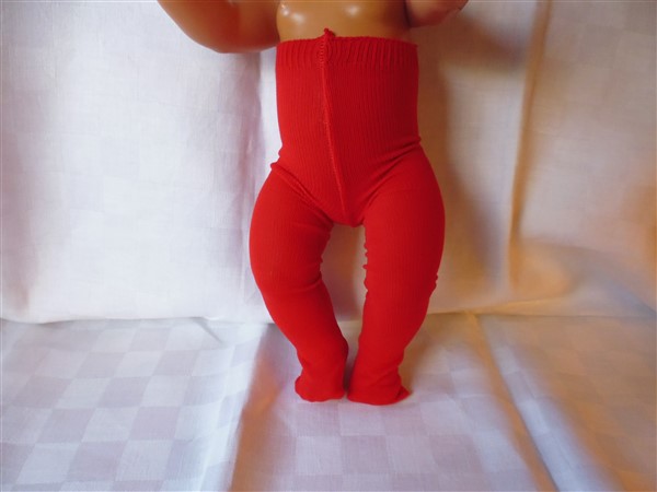 Röda tunna strumpbyxor. De passar bla Baby Born & New Born Baby (Simbas 43cm). Pris: 63 kr.