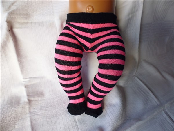 Rosa & svart randiga strumpbyxor. De passar Baby Born, New Born Baby (Simbas 43cm). Pris: 78 kr.