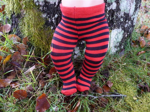 Röda & svart randiga strumpbyxor. De passar Baby Born, New Born Baby (43 cm). Pris: 78 kr.