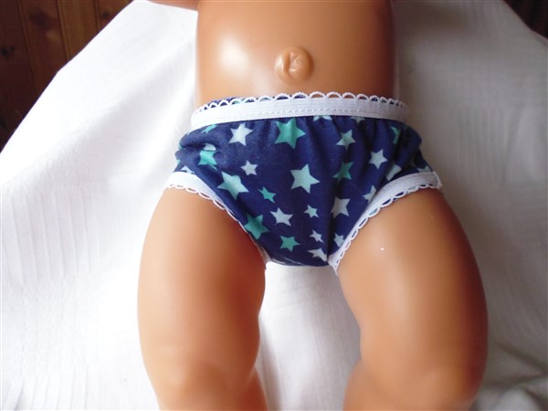Blå trosor med stjärnor. De passar Baby Born och New Born Baby (43 cm). Pris: 53 kr