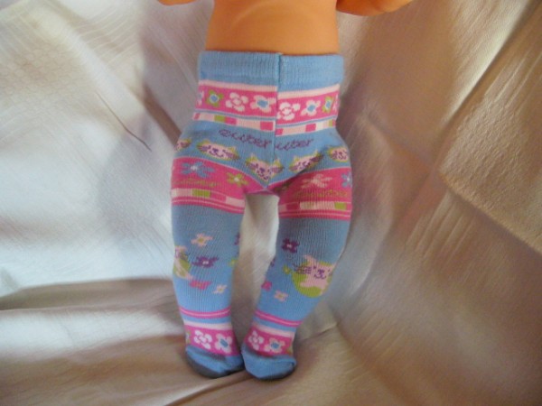 Ljusblå strumpbyxor med katter. De passar Skrållan, Baby Born, New Born Baby (Simbas 43cm). Pris: 78 kr.
