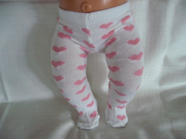 Vita strumpbyxor med rosa hjärtan. De passar Baby Born & New Born Baby (Simbas 43cm). Pris: 68 kr.