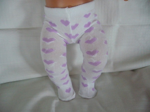 Vita strumpbyxor med lila hjärtan. De passar Baby Born & New Born Baby (Simbas 43cm). Pris: 68 kr.