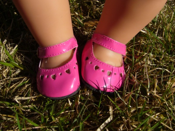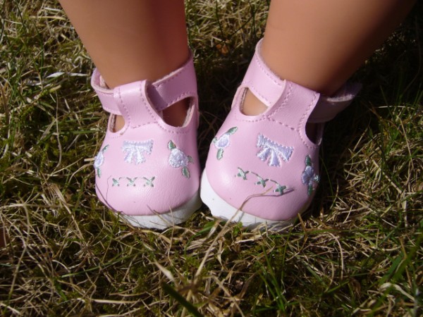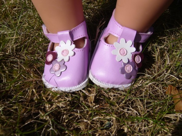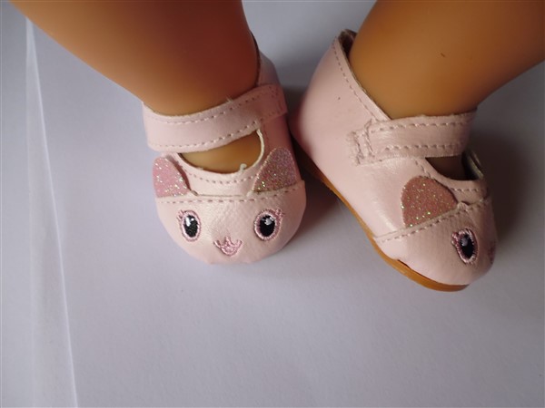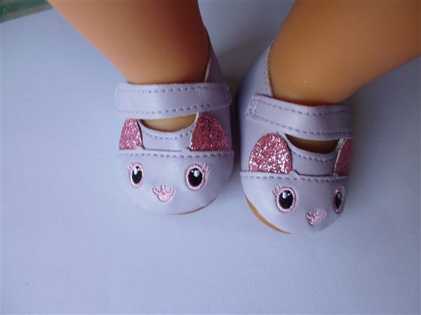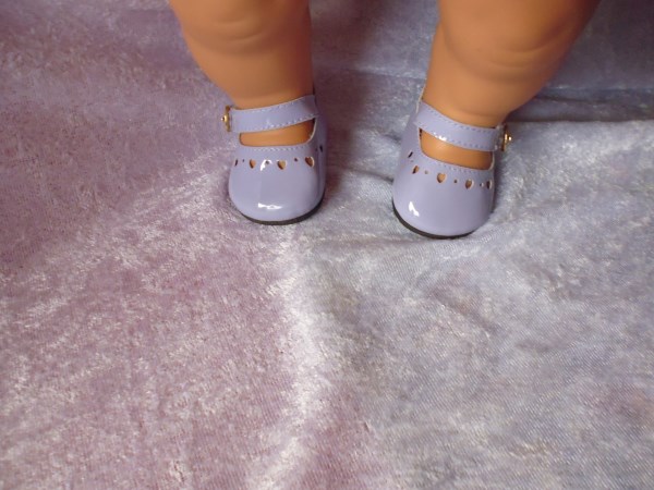 Ljuslila skor som knäpps med kardborre. Skon är 7,2 cm lång och 3,9 cm bred. De passar Skrållan. Även Baby Born & New Born Baby (Simbas 43 cm) kan ha dem om de har en strumpa på foten. Pris: 119 kr.