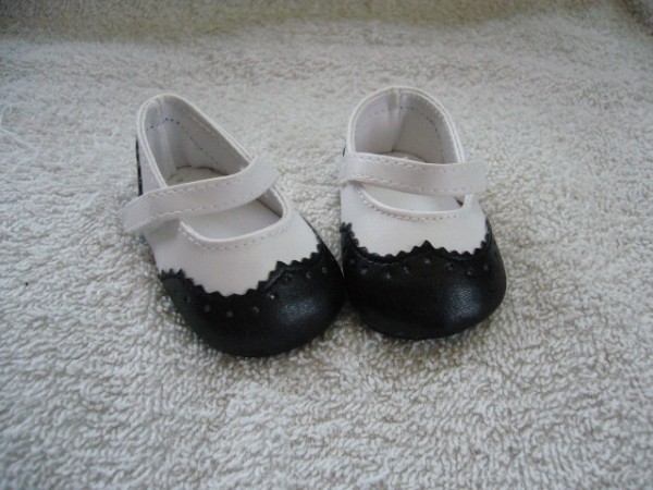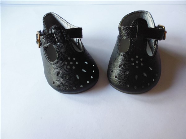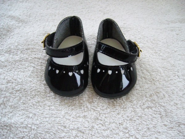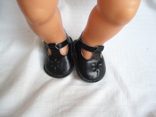 Svarta skor som knäpps med kardborre. Skon är 7,2 cm lång och 3,9 cm bred. De passar Skrållan. Även Baby Born & New Born Baby (Simbas 43 cm) kan ha dem om de har en strumpa på foten. Pris: 119 kr.