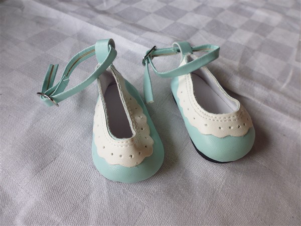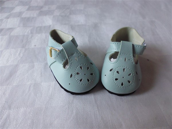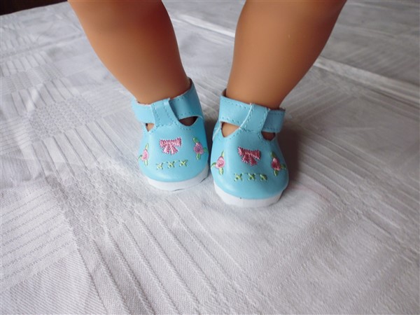 Turkos skor med en vristrem som knäpps med spännet. Skon är ca 7 cm lång. De passar Baby Born & New Born Baby 43 cm). Pris: 109 kr
