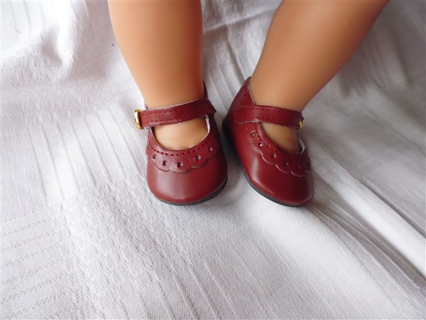 Vinröda skor om knäpps med kardborre. Sulans yttermått är ca 7 cm. De passar Baby Born & New Born Baby (43 cm). Pris: 109 kr.