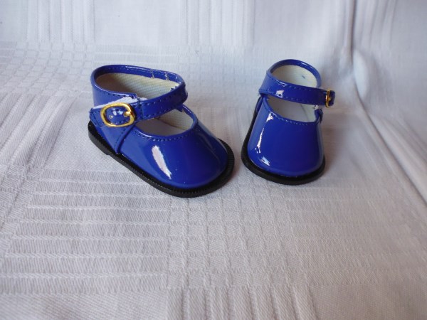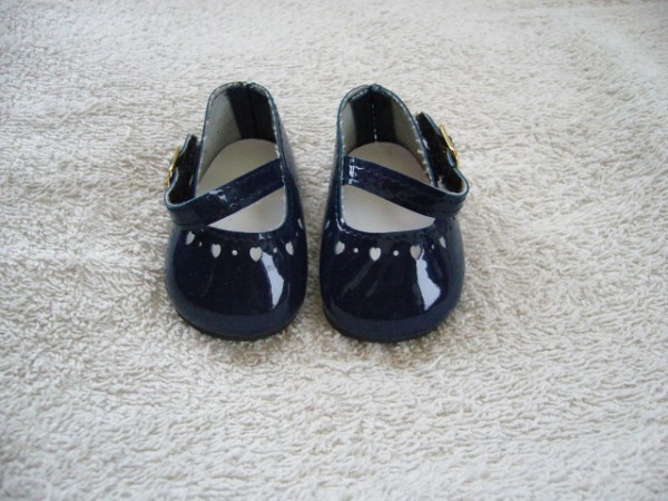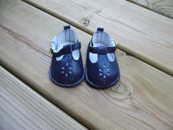 Marinblå skor som knäpps med kardborre. Skon är 7,2 cm lång och 3,9 cm bred. De passar Skrållan. Även Baby Born & New Born Baby (Simbas 43 cm) kan ha dem om de har en strumpa på foten. Pris: 119 kr.