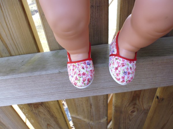 Blommiga skor. Sulans yttermått är 7 cm. Passar Skrållan, även Baby Born & New Born Baby (43 cm) kan ha dem om de har en strumpa på foten. Pris: 99 kr.