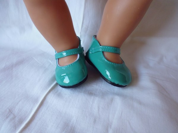 Grön turkos skor om knäpps med kardborre. Sulans yttermått är 7 cm. De passar Baby Born & New Born Baby (43 cm). Pris: 109 kr.