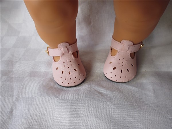 Rosa skor som knäpps med kardborre. Sulans yttermått är ca 6,5 cm lång. De passar Baby Born (43 cm) & New Born Baby (43 cm). Pris: 115 kr.