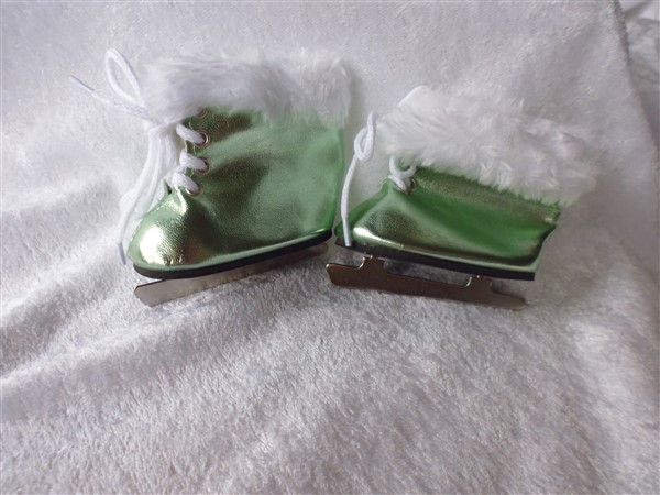 Glänsande gröna skridskor med vit pälskant. Skridskon är 7,2 cm lång. Passar Baby Born & New Born Baby (43 cm). Pris:149 kr