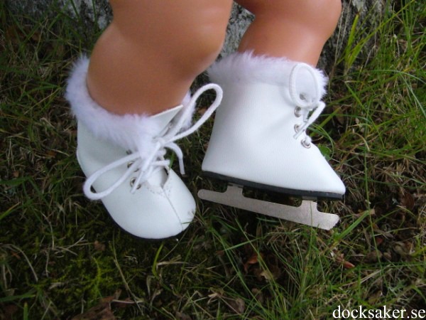 Vita skridskor med pälskant. Skridskon är ca 7 cm lång. Passar Baby Born & New Born Baby (43 cm). Pris: 149 kr