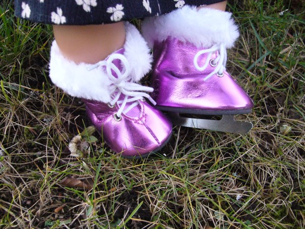 Glänsande lila skridskor med vit pälskant. Skridskon är 7,2 cm lång. Passar Baby Born & New Born Baby (43 cm). Pris: 149 kr.